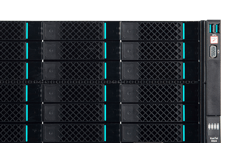 KunTai R524 存储型服务器是人生就是搏数码基于鲲鹏处理器推出的新一代 ARM数据中心服务器。。。。主要面向存储业务,,,,具有海量存储、、、、高性能、、低功耗以及易扩展的特点,,,适合为大数据分析、、、软件定义存 储等应用场景的工作负载进行髙效加速。。